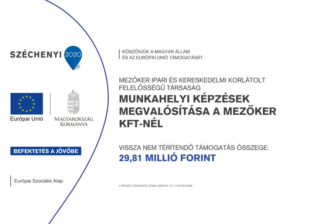A projekt címe: Munkahelyi képzések megvalósítása a MEZŐKER Kft-nél